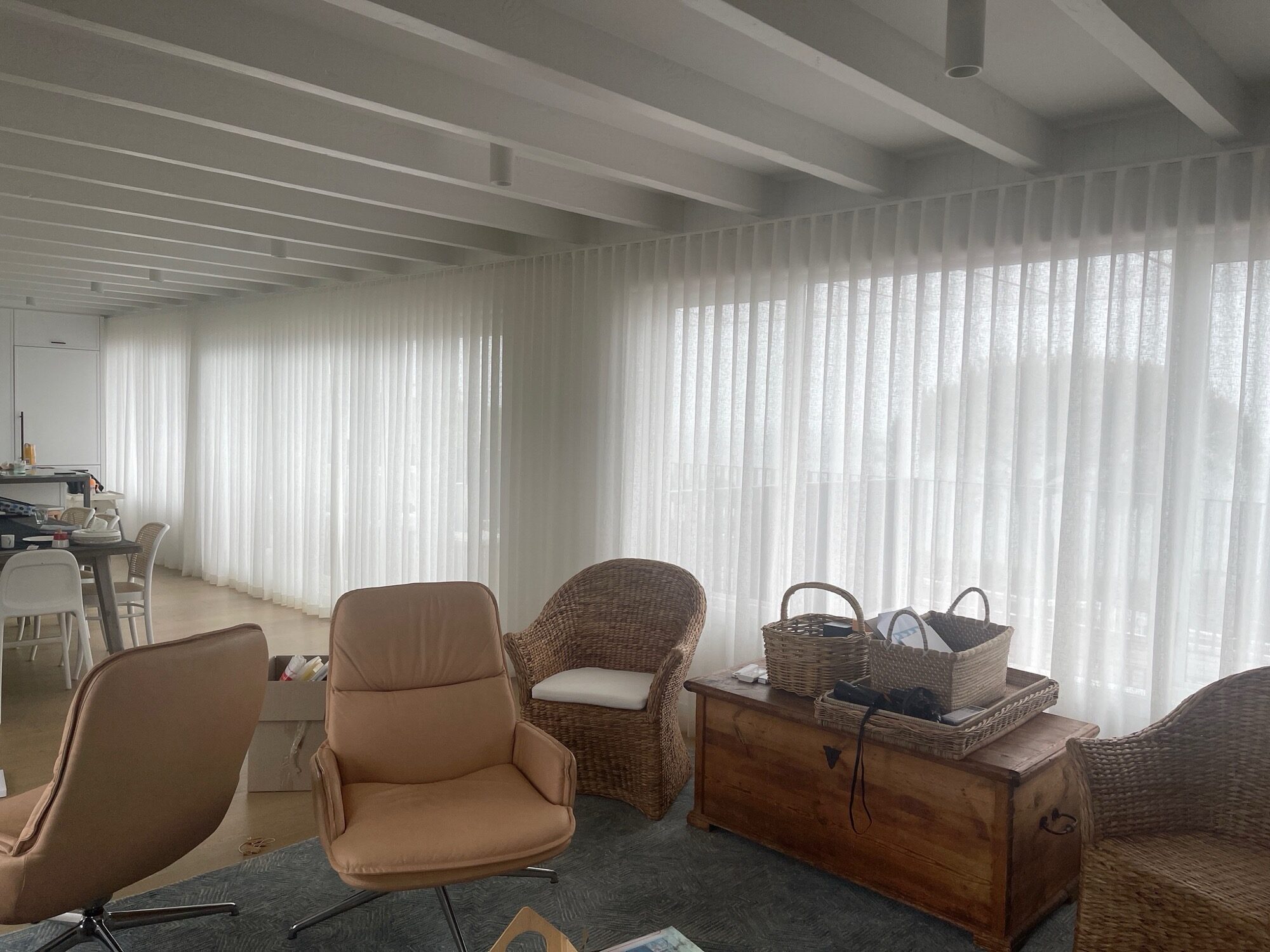 Elegant light filtering for Mount Martha living and dining rooms.